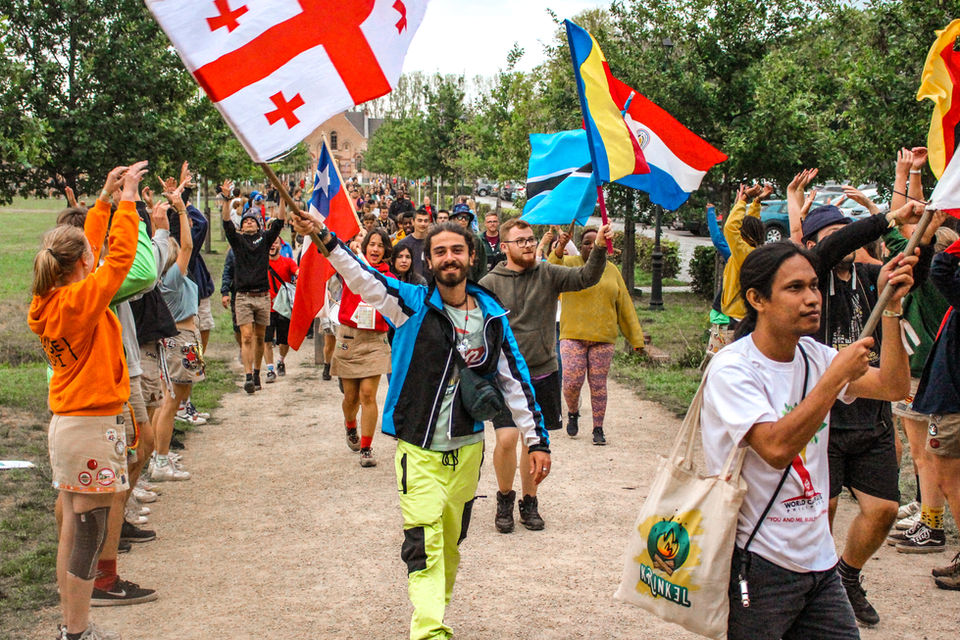 Krinkel is a camp where members of the entire Chiro Flanders go to camp together to have the most fun activities. There are different campgrounds per region of Belgium. You will eat, live and sleep in tents on a separate campground with participants from youth movements that are members of FIMCAP or other youth movements. You will be divided into different living groups where you will carry out most of the activities. Your living group consists of international participants and participants from Chiro Flanders who register for this camp site. The international campground at Krinkel does enchanting activities like any other camp site does and of course also participates in the mass moments.